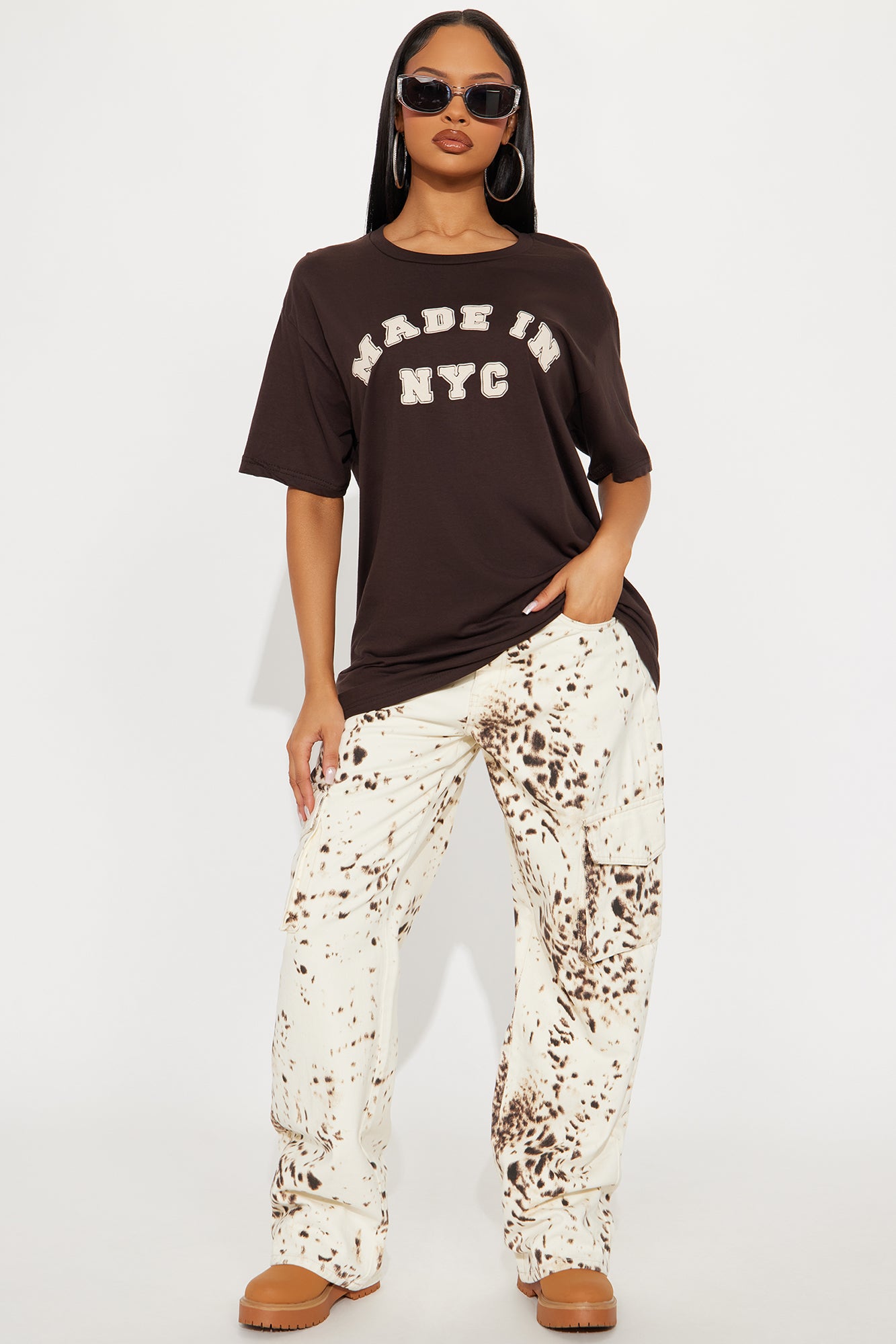 تيشيرت “صنع في نيويورك” واسع – بني غامق