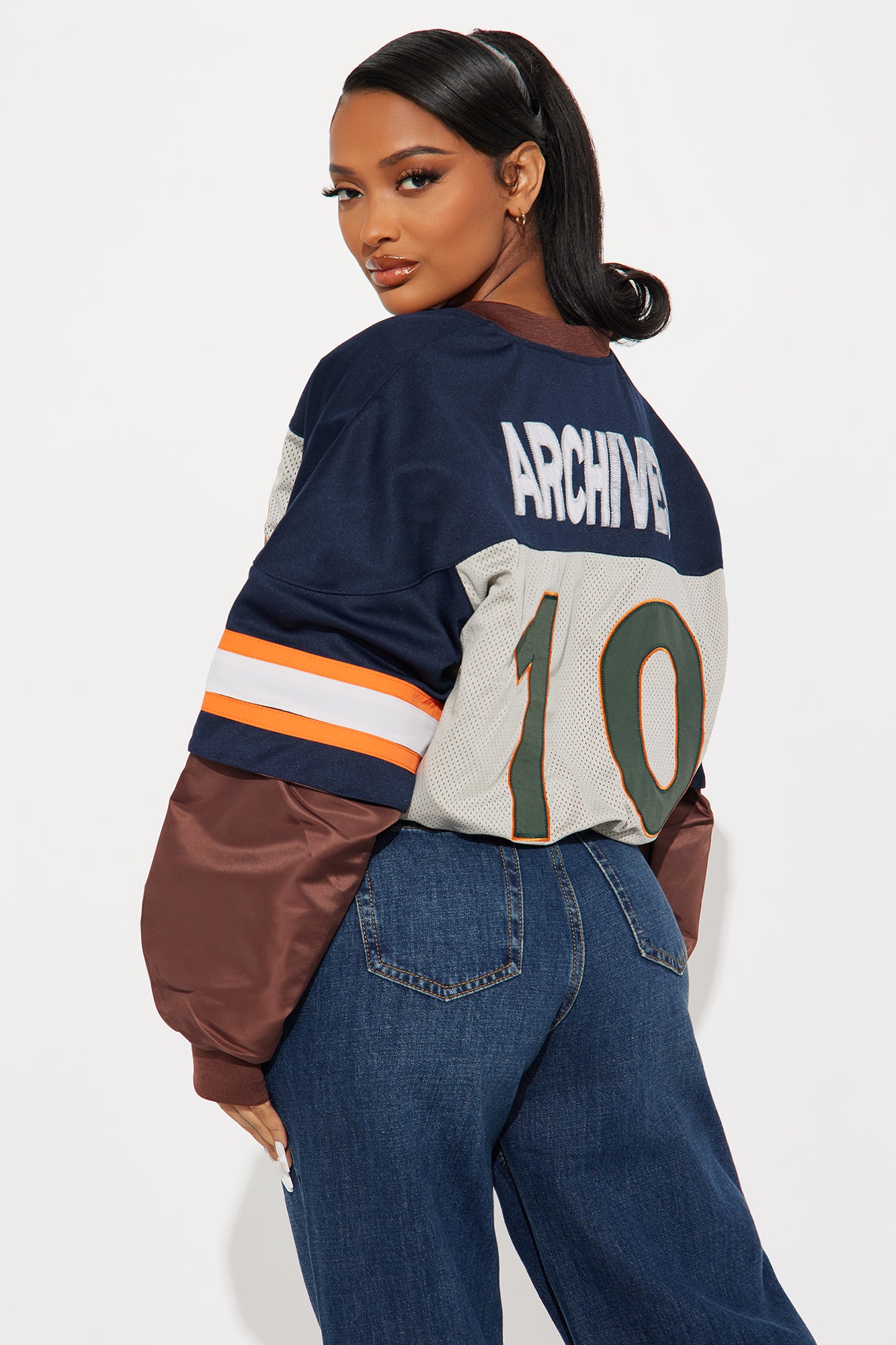 متوفر باللون الكحلي المتعدد. سحاب أمامي، أكمام طويلة، تفاصيل رقعات (Patches)، تفاصيل شبكة جيرسي، قماش مطاطي. الغلاف: 100% نايلون. مستورد.