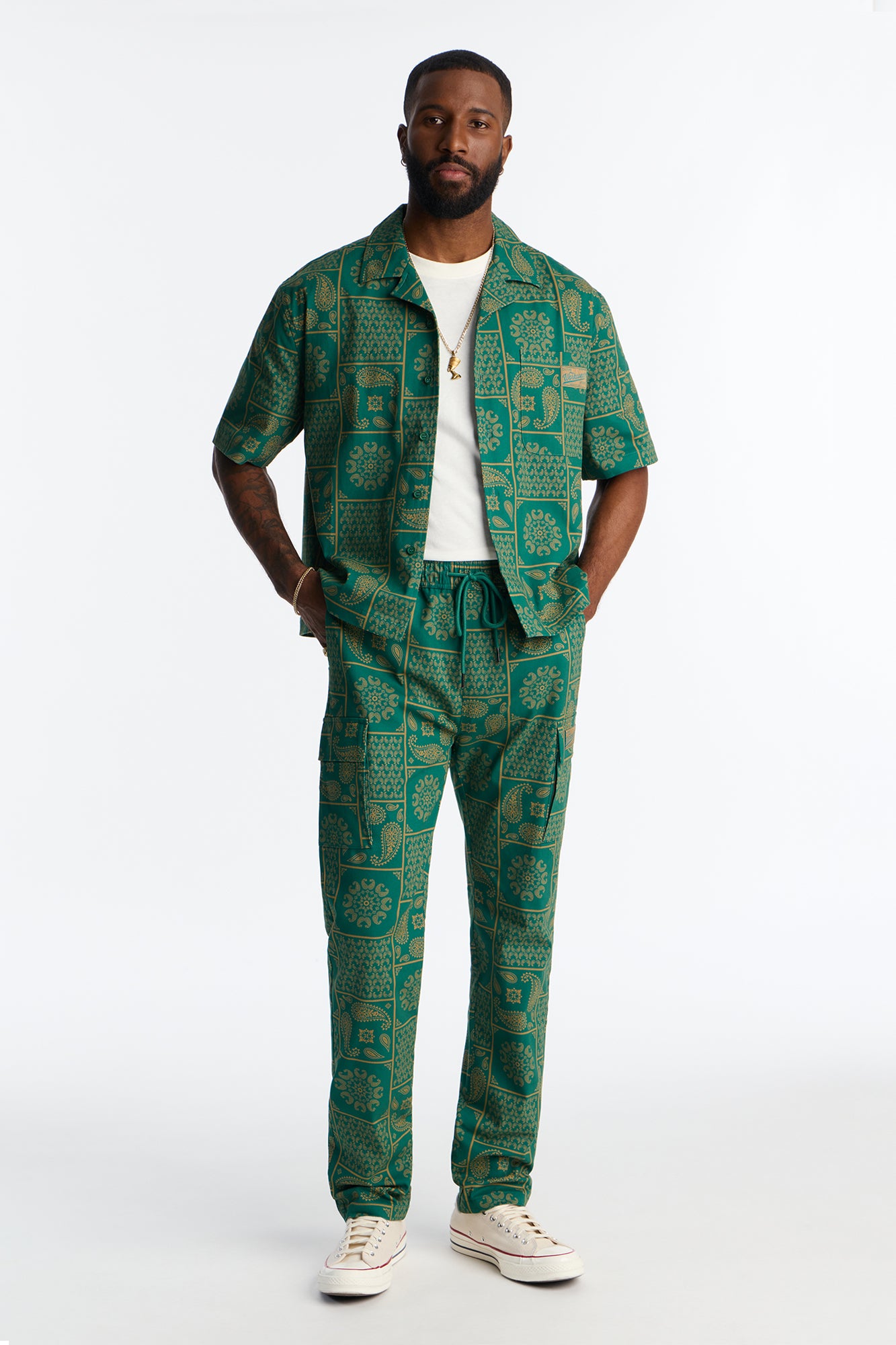 قميص “صن داون لاونج” بأزرار – بيج داكن/متعدد الألوان