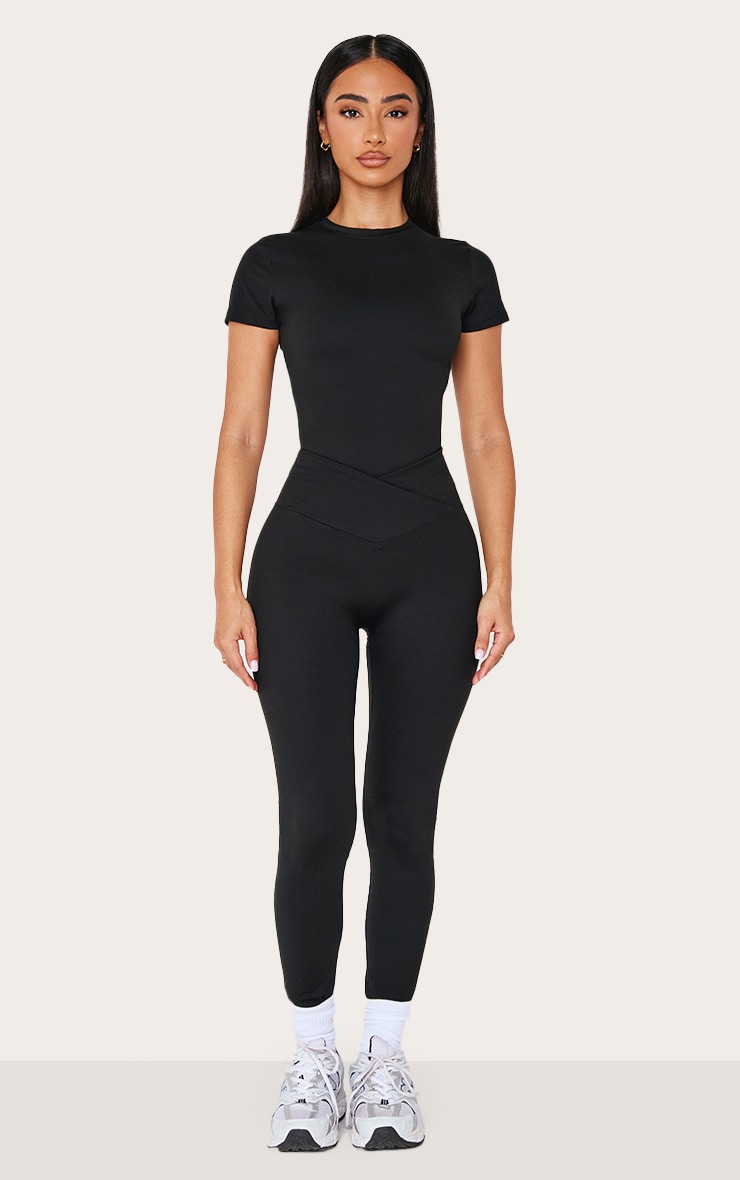 ليجنز أسود بخصر مطوي متباين لنحت الجسم – شيب